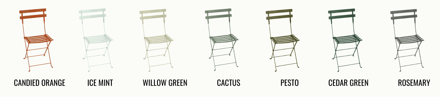 Classically French outdoor furniture made in France and shipped to your door. Created in 1889, the same year as the Eiffel Tower, this smart, cheerful collection brings charm and authenticity to any garden. We have selected some of our favorite silhouettes in distinct ELIZABETH STUART hues. Pick your palette and place your order! The FERMOB collection shipped from France directly to your door.