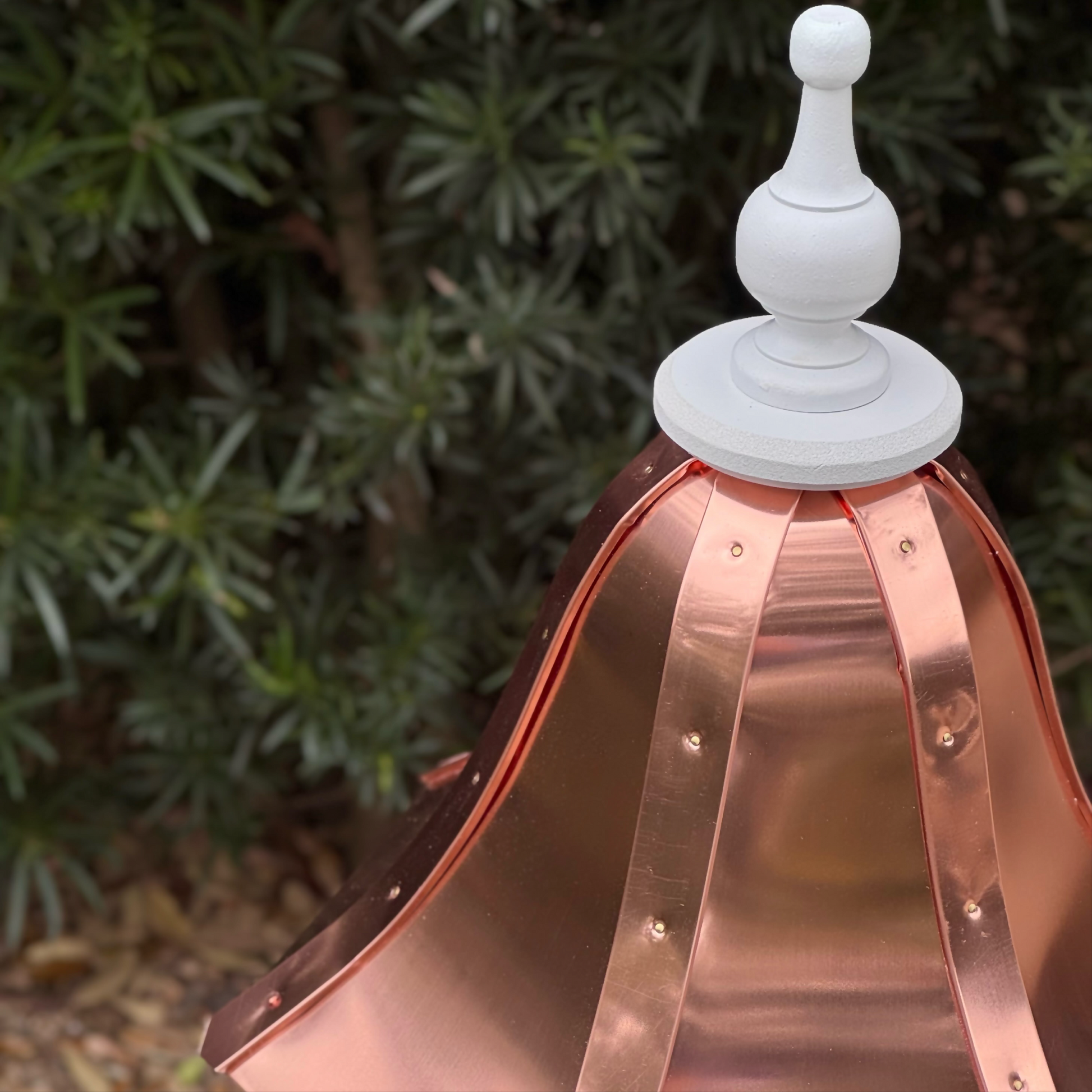 This charming birdhouse is designed to withstand the elements and features a striking copper bell roof. With three separate compartments and 1 ½” copper portals, it provides a cozy sanctuary for birds, while the removable roof ensures easy cleaning and maintenance. Brackets are included to fit a 4”x4” vinyl sleeve post (post sold separately).