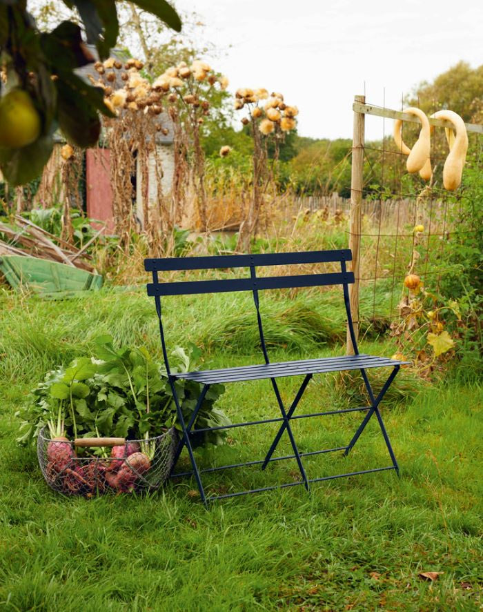 The Bistro Two-Seater Bench, part of the Bistro Collection, features a sturdy steel flat frame, steel slats for the seat and backrest, and seamlessly blends comfort with contemporary design. Its convenient plastic clips enable safe folding and unfolding while a steel cross-piece ensures structural integrity.