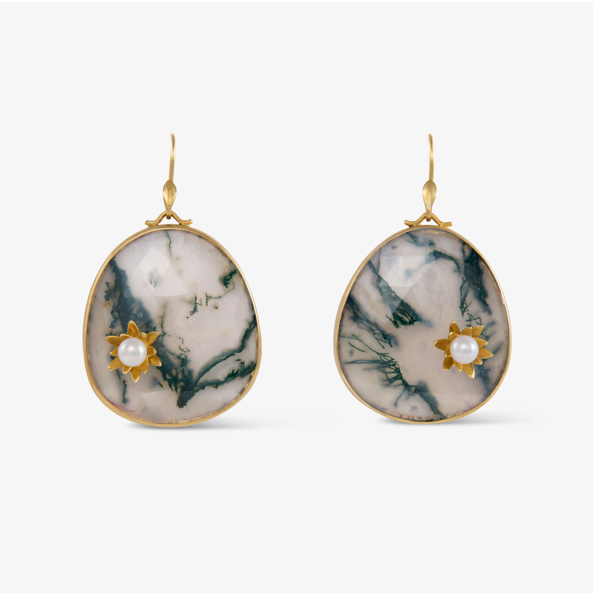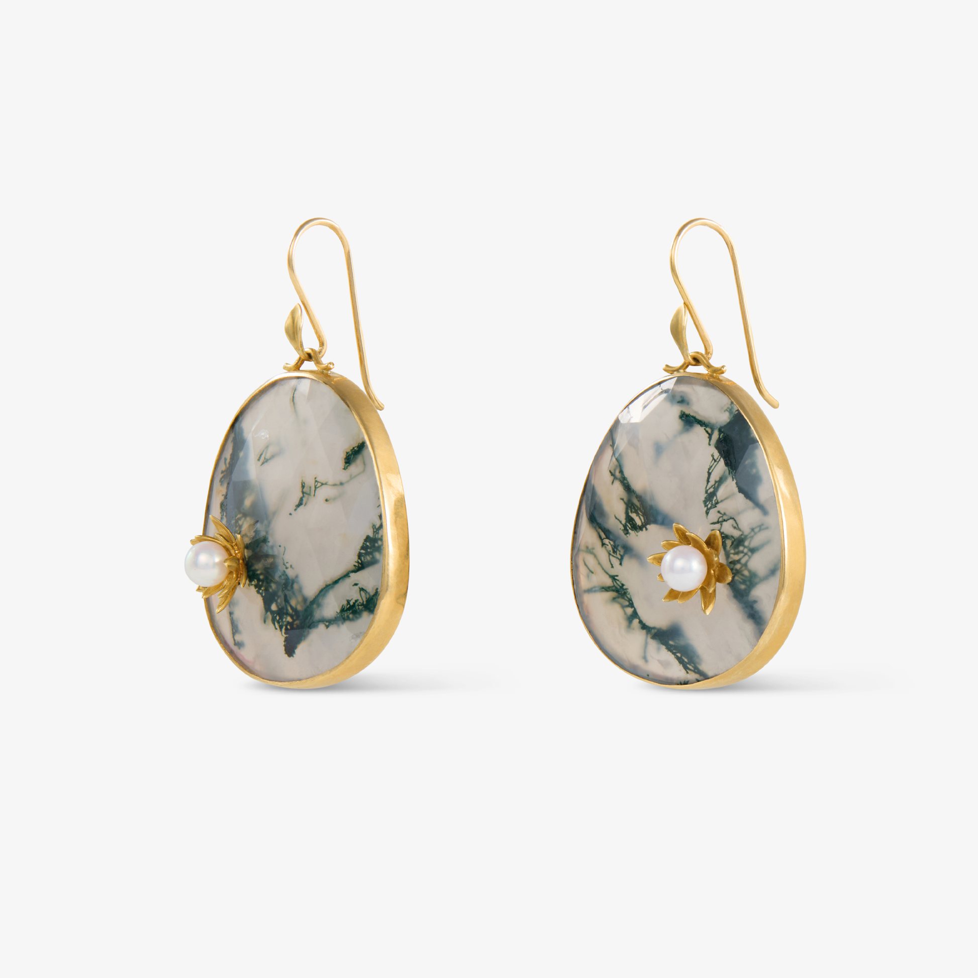 Monet Waterlily Earrings with Moss Agate & Lily Blossoms