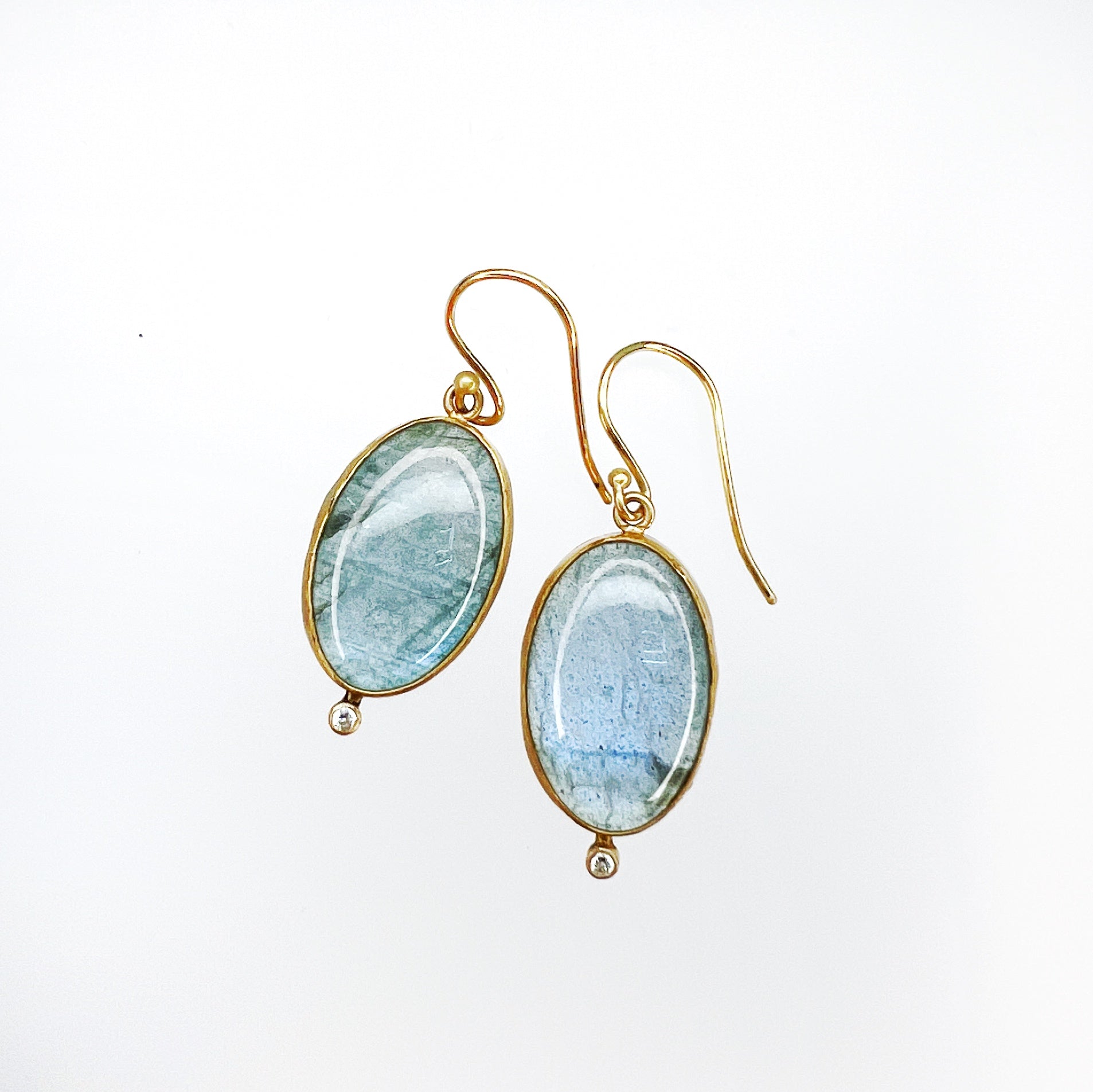 Oval Labradorite & Diamond Earrings