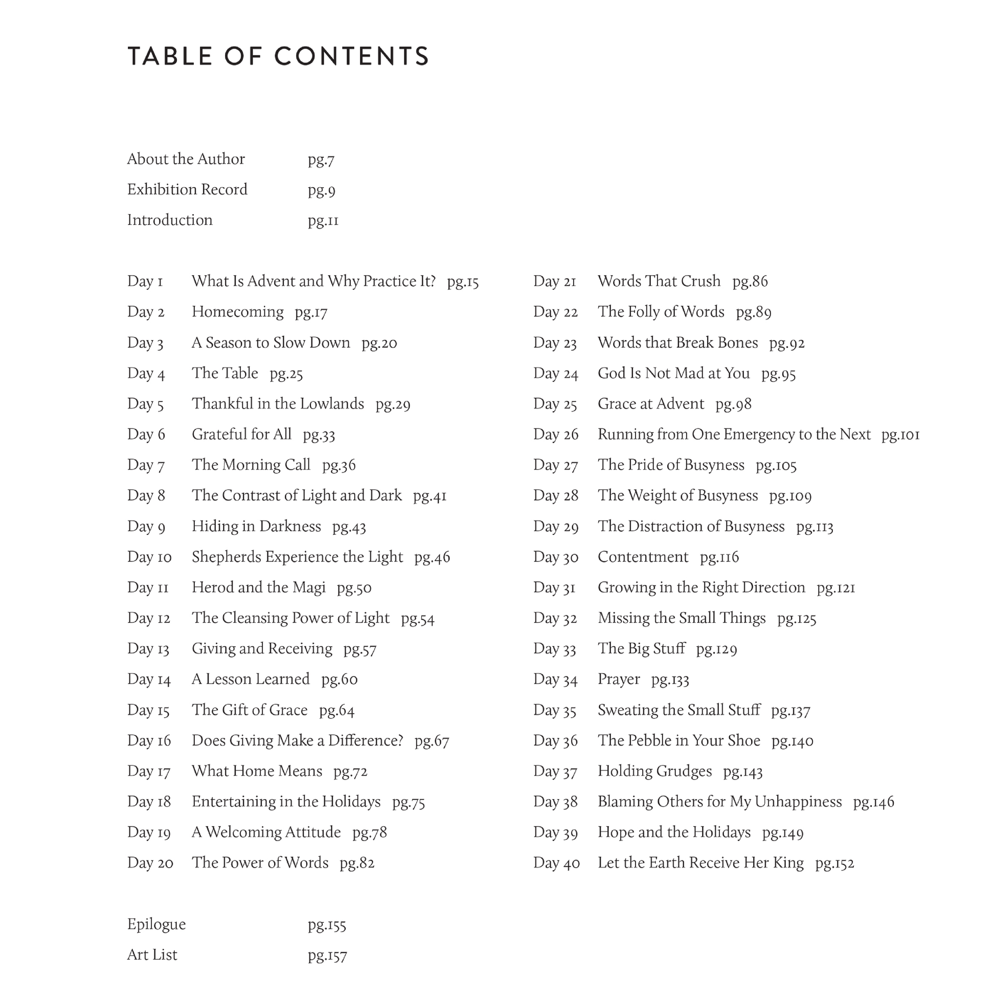 This book is a 40-day journey through the Advent season featuring original artwork, scripture, and reflections by Brenda Bogart. Designed to inspire stillness and anticipation, The Art of Advent invites you to prepare your heart and mind for the arrival of Christmas and to rediscover the beauty of waiting with intention and wonder.
